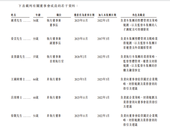钟勇,推论董事兼董事长,2025年11月委任,2022年1月加入,负责合座解决与计策盘算等。